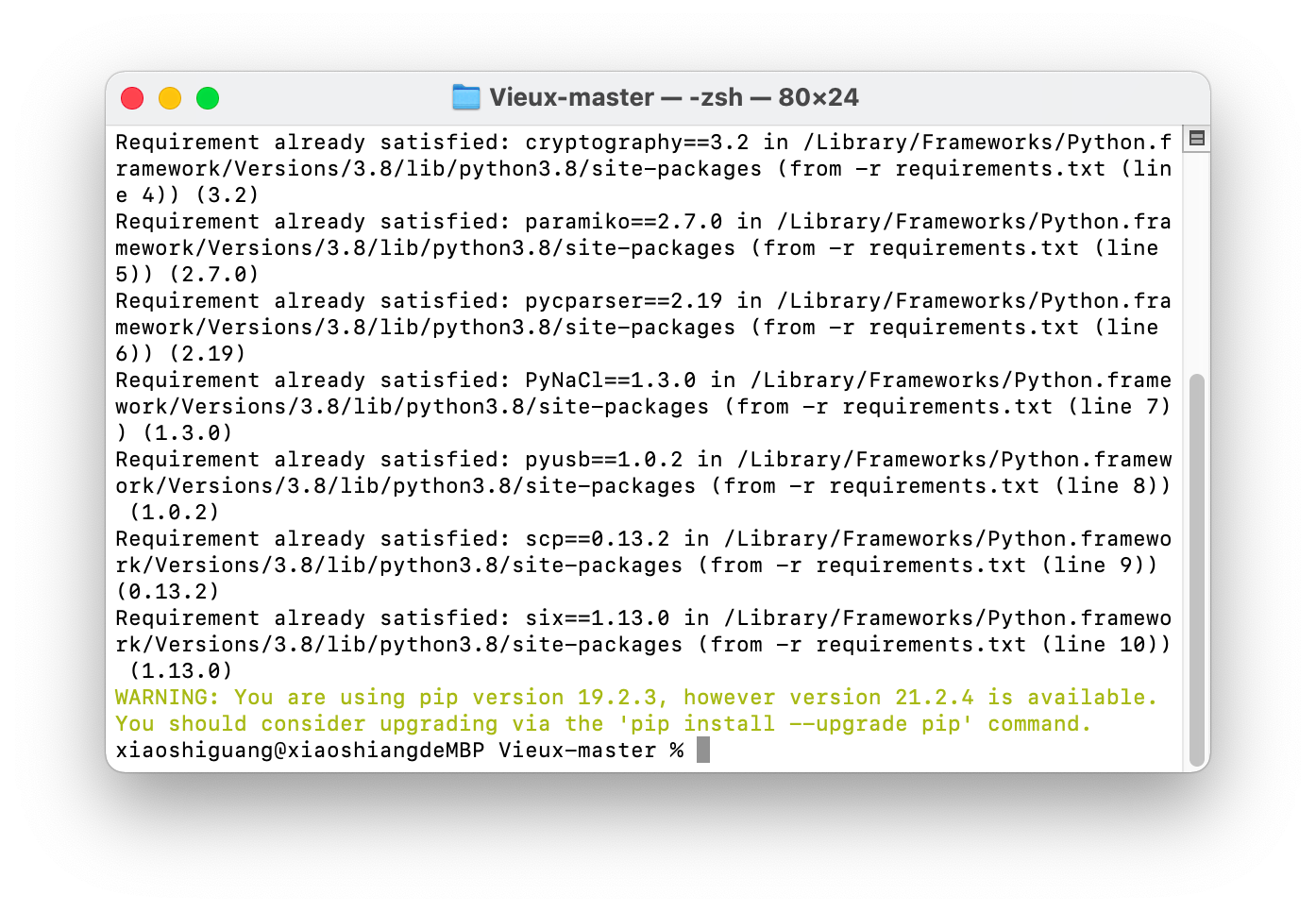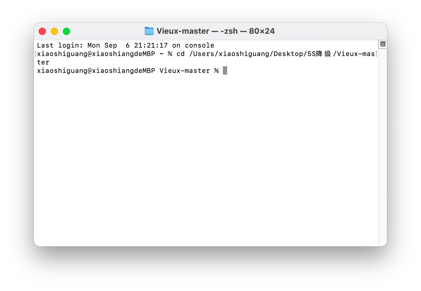 2.解压Vieux-master.zip压缩包,解压完后使用终端cd到Vieux-master目录。