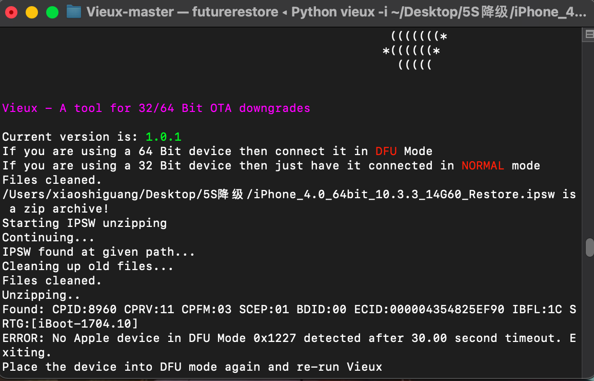 问题二:ERROR: No Apple device in DFU Mode 0x1227