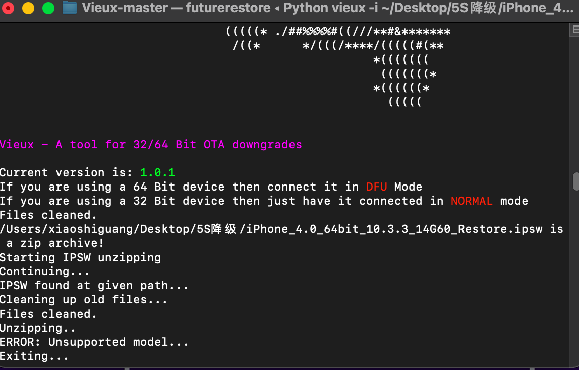2.重新进入DFU模式,建议在运行脚本后时候进入。
