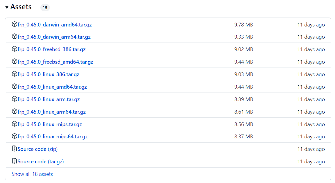 Frp下载地址:Releases · fatedier/frp (github.com),根据自己的系统下载相应的版本,教程使用Centos7X64进行演示。